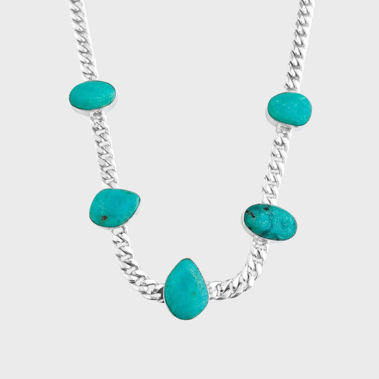 Gargantilha de Corrente Grumet com Pedra Turquesa - 40cm