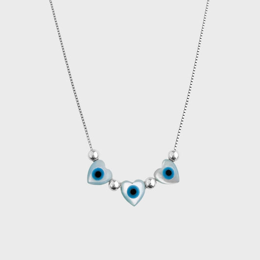 Gargantilha de Olho Grego de Coração em Madrepérola
