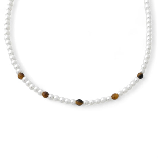Gargantilha de Pérola Murano com Olho de Tigre - 38cm