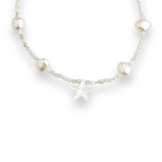 Pulseira de Pérola Batata com Estrela em Madrepérola- 16cm