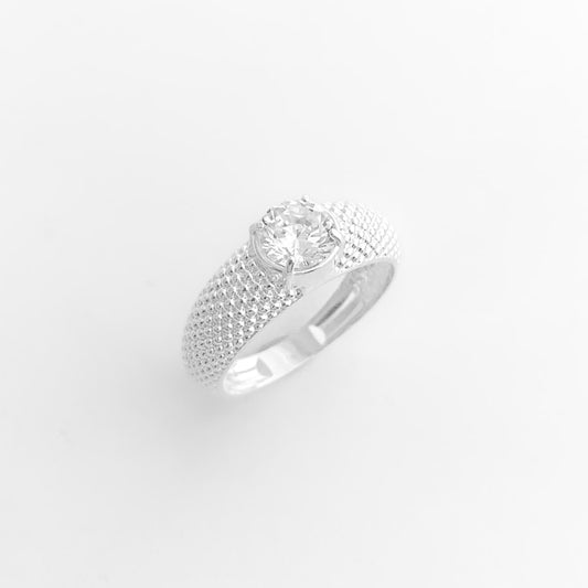 Anel com Aro Trabalhado com Zircônia Redonda Branca