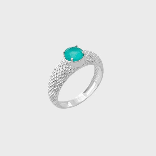 Anel com Aro Trabalhado com Zircônia Turmalina da Paraíba Fosco