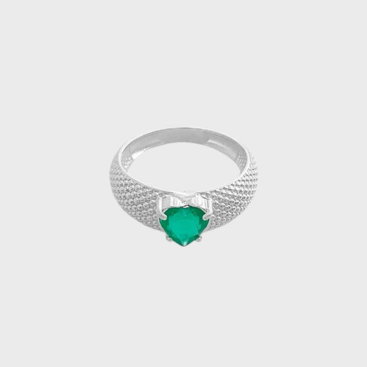 Anel com Aro Trabalhado com Zircônia de Coração Criso Leitosa