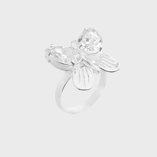 Anel com Borboleta Vazada e com Zircônias Brancas