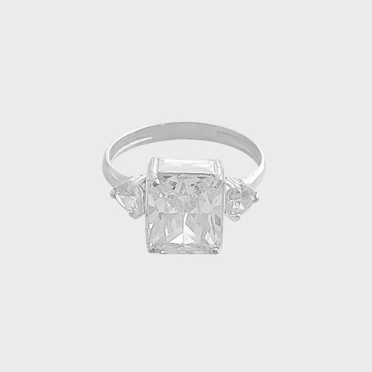 Anel com Zircônia em Formato Retangular e Coração