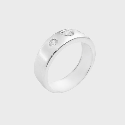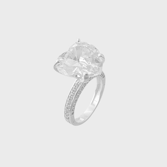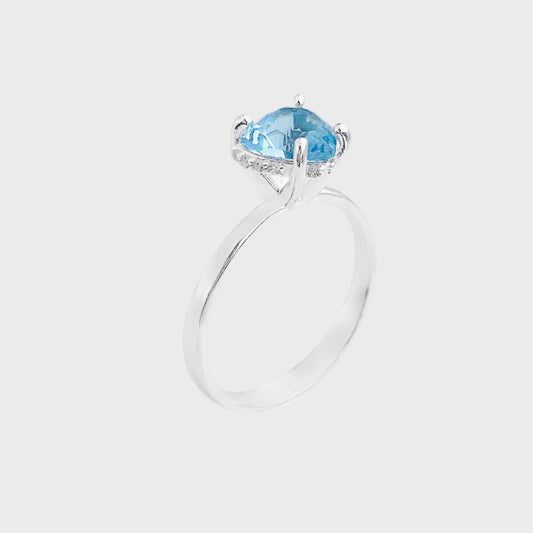 Anel Solitário com Zircônia de Coração em Água Marinha e Zircônias Brancas