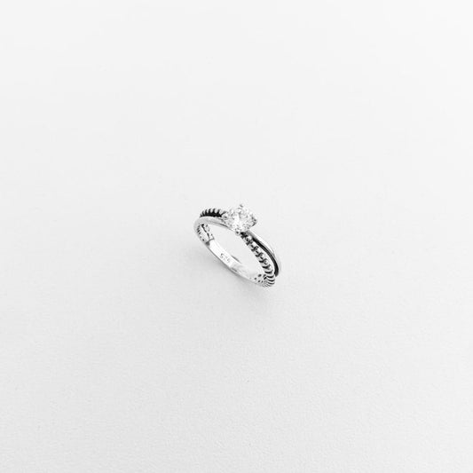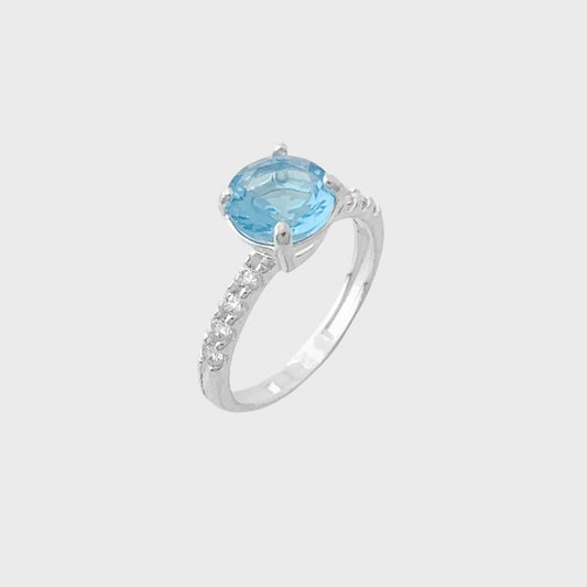 Anel Solitário com Zircônias Brancas e Água Marinha
