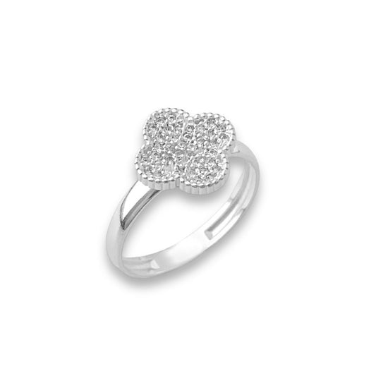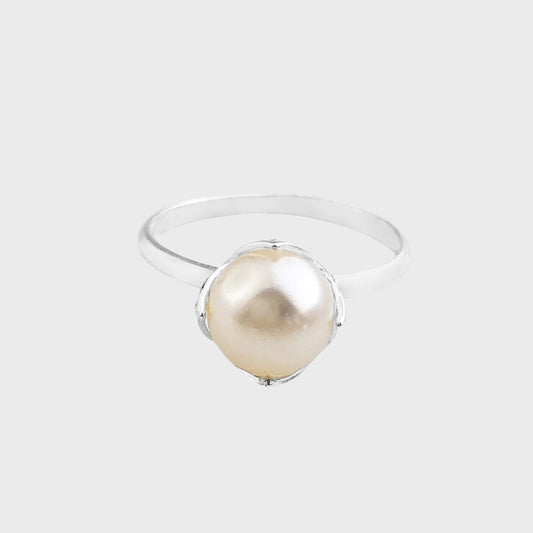 Anel Solitário de Pérola com Detalhes em Folhas com Zircônias Brancas