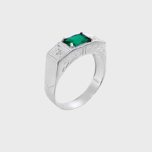 Anel Masculino Trabalhado com Zircônia em Esmeralda