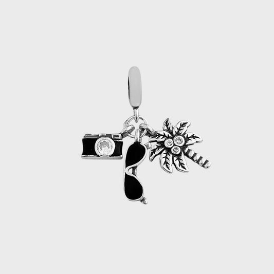Berloque de Máquina Fotográfica, Óculos de Sol e Coqueiro com Zircônias
