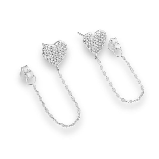 Brinco de Coração Cravejado de Zircônias e Corrente