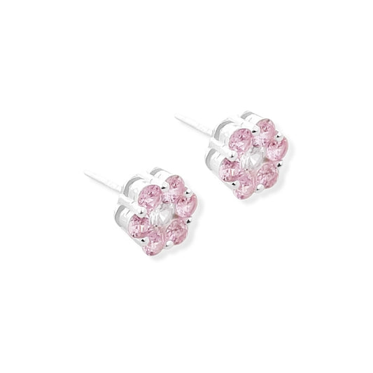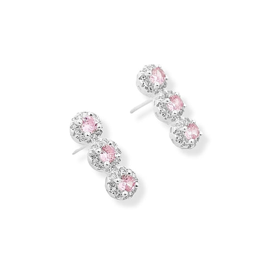 Brinco de Zircônia Rosa com Bordas Cravejadas