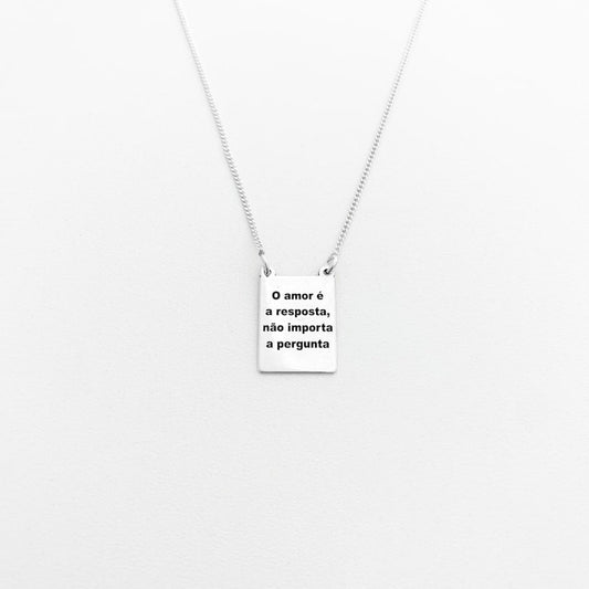 Escapulário "O amor é a resposta, não importa a pergunta" com Amazonita - 70cm