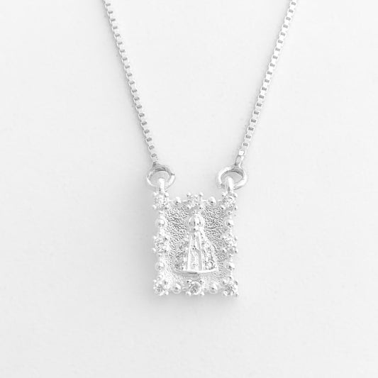 Escapulário com Cruz e Nossa Senhora Aparecida com Bordas Cravejada de Zircônias - 70cm
