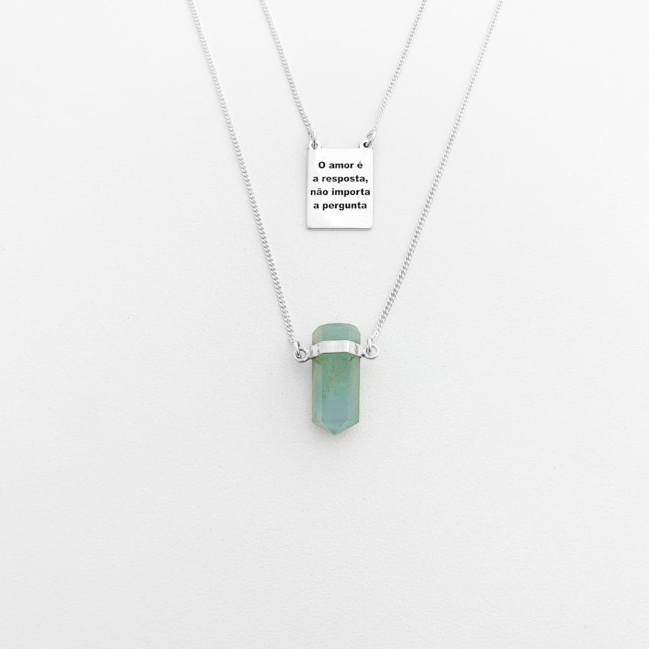 Escapulário "O amor é a resposta, não importa a pergunta" com Amazonita - 70cm