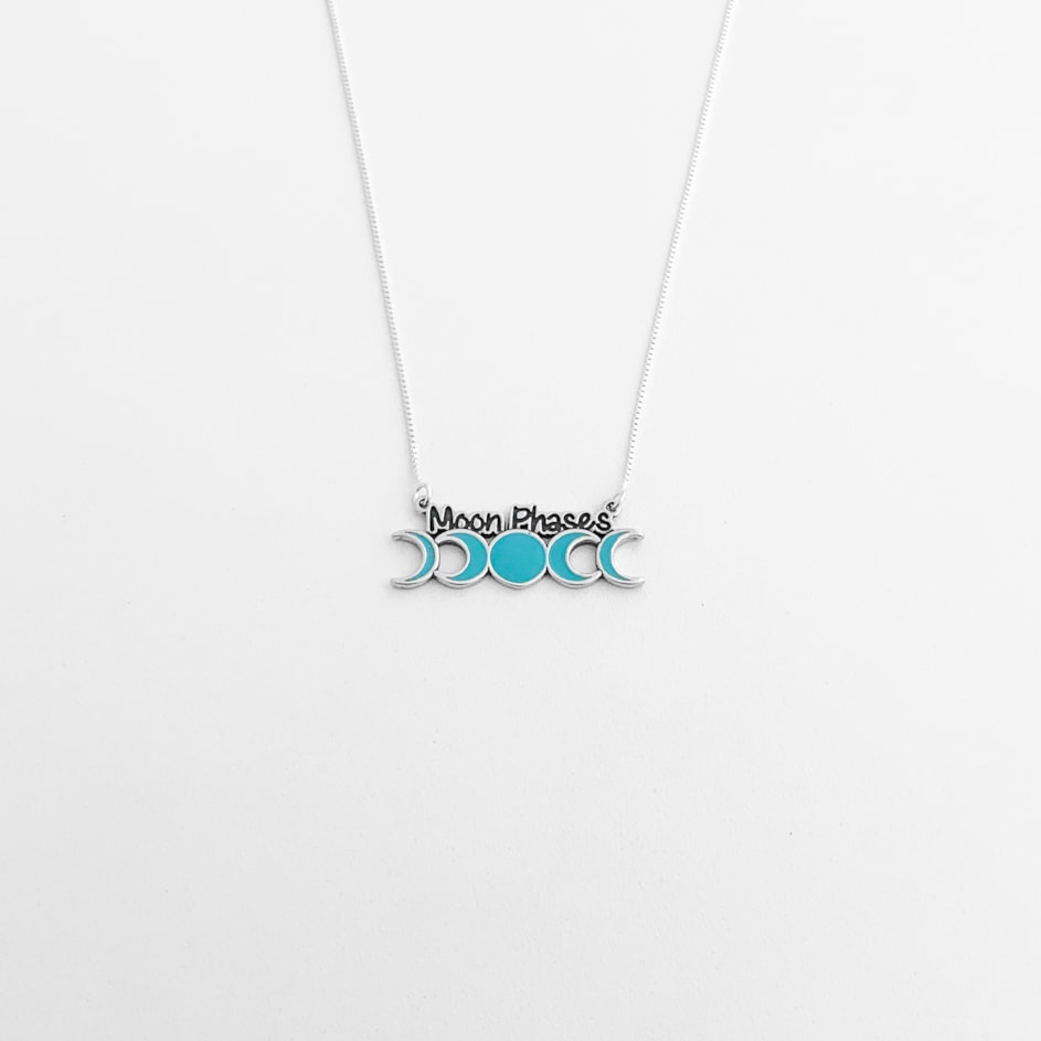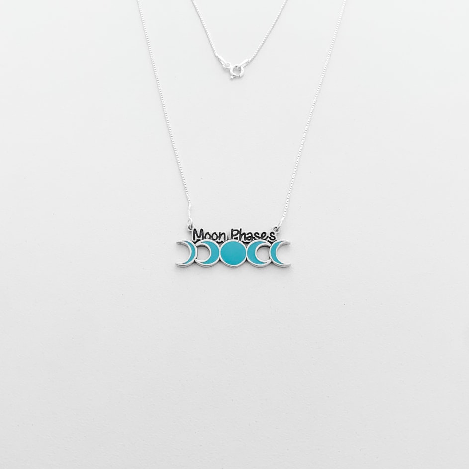 Gargantilha com Fases da Lua em Resina e "Moon Phases" - 60cm