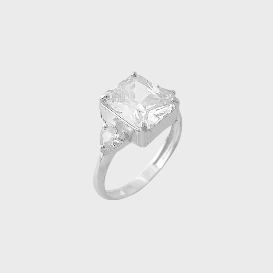 Anel com Zircônia em Formato Retangular e Coração