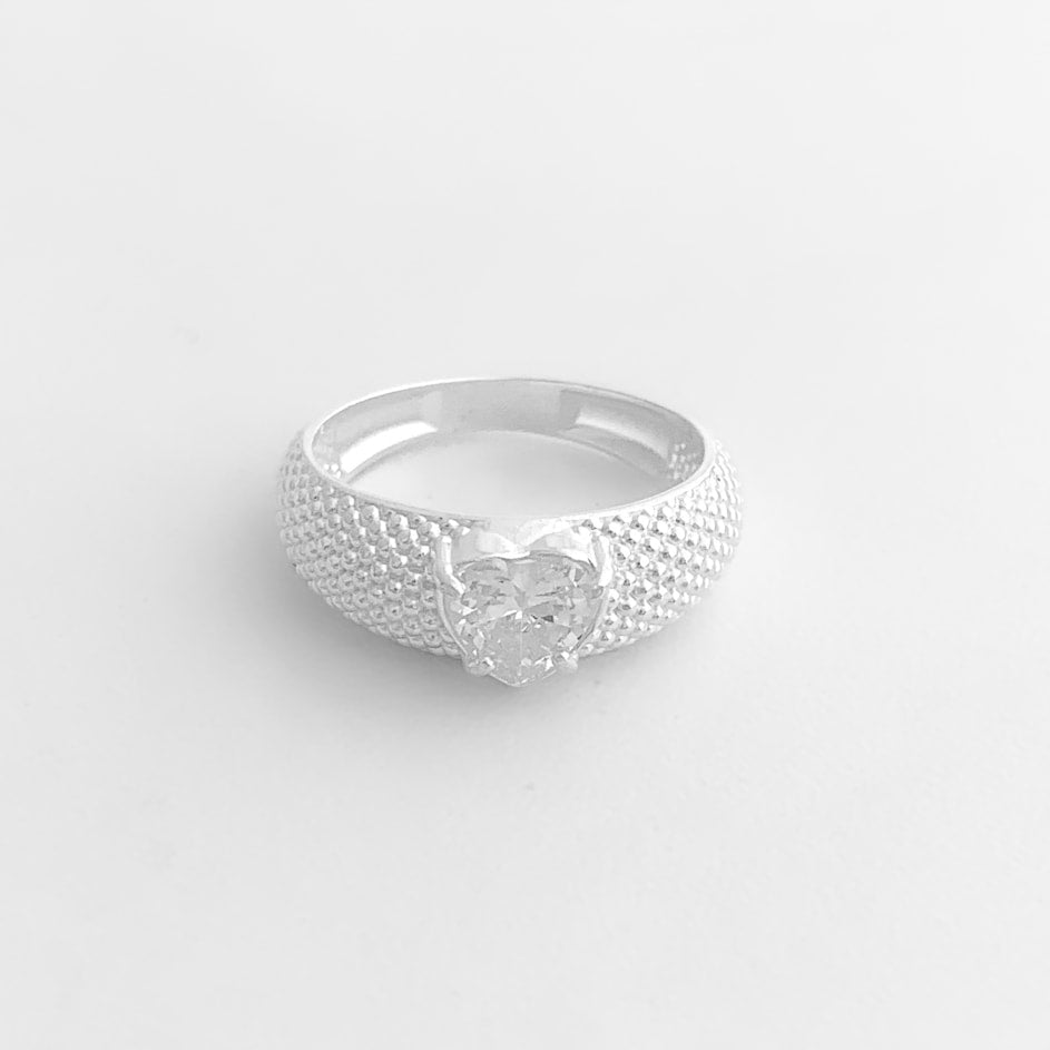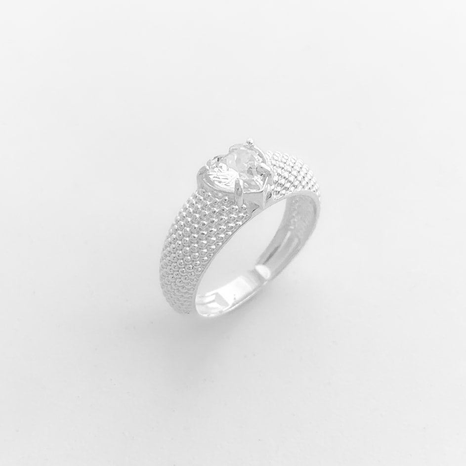 Anel com Aro Trabalhado com Zircônia de Coração Branca