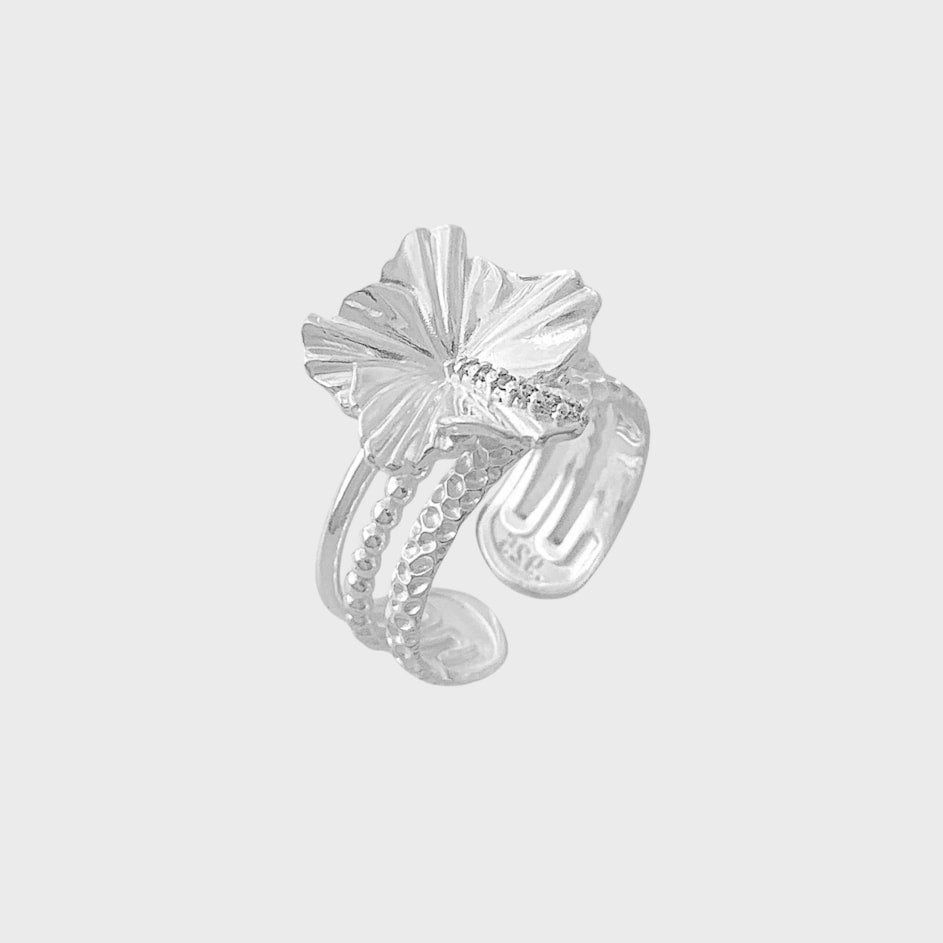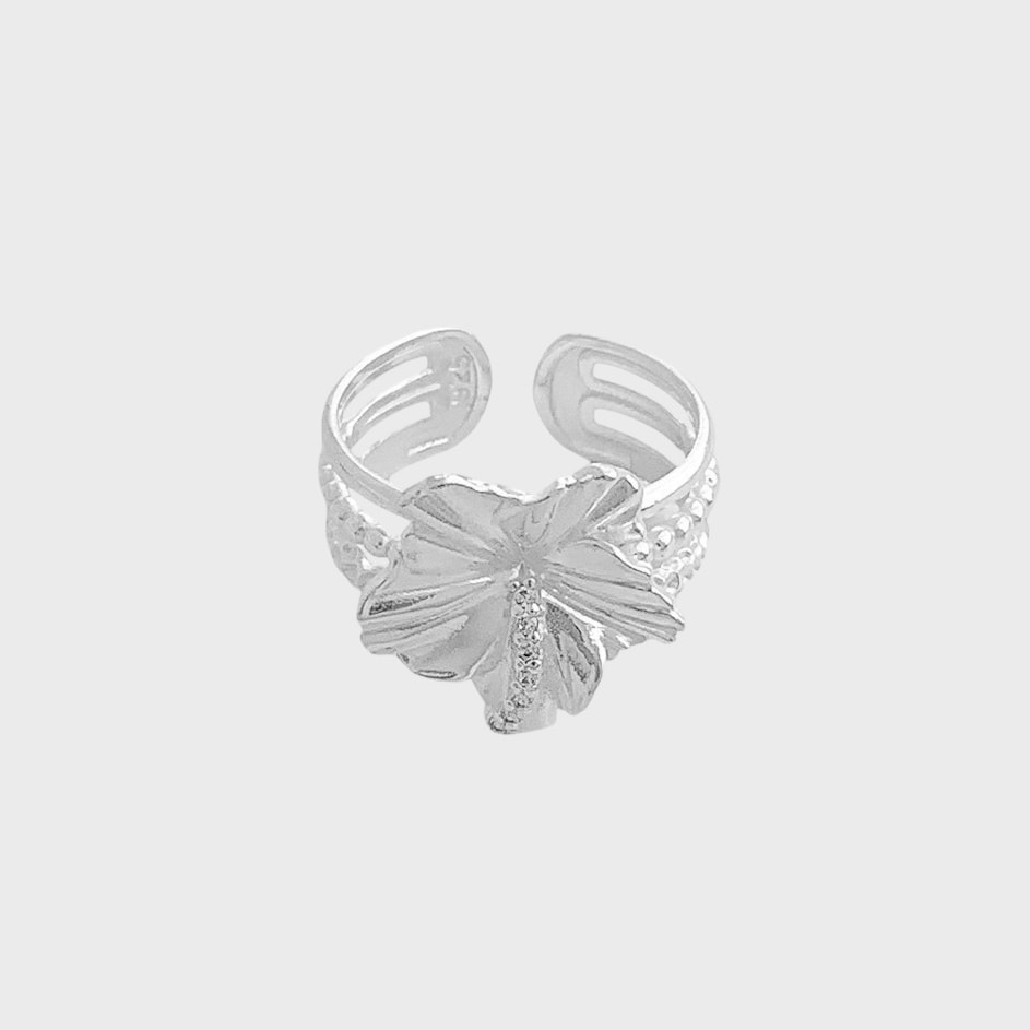 Anel de Aro Trabalhado com Flor de Hibísco com Zircônias