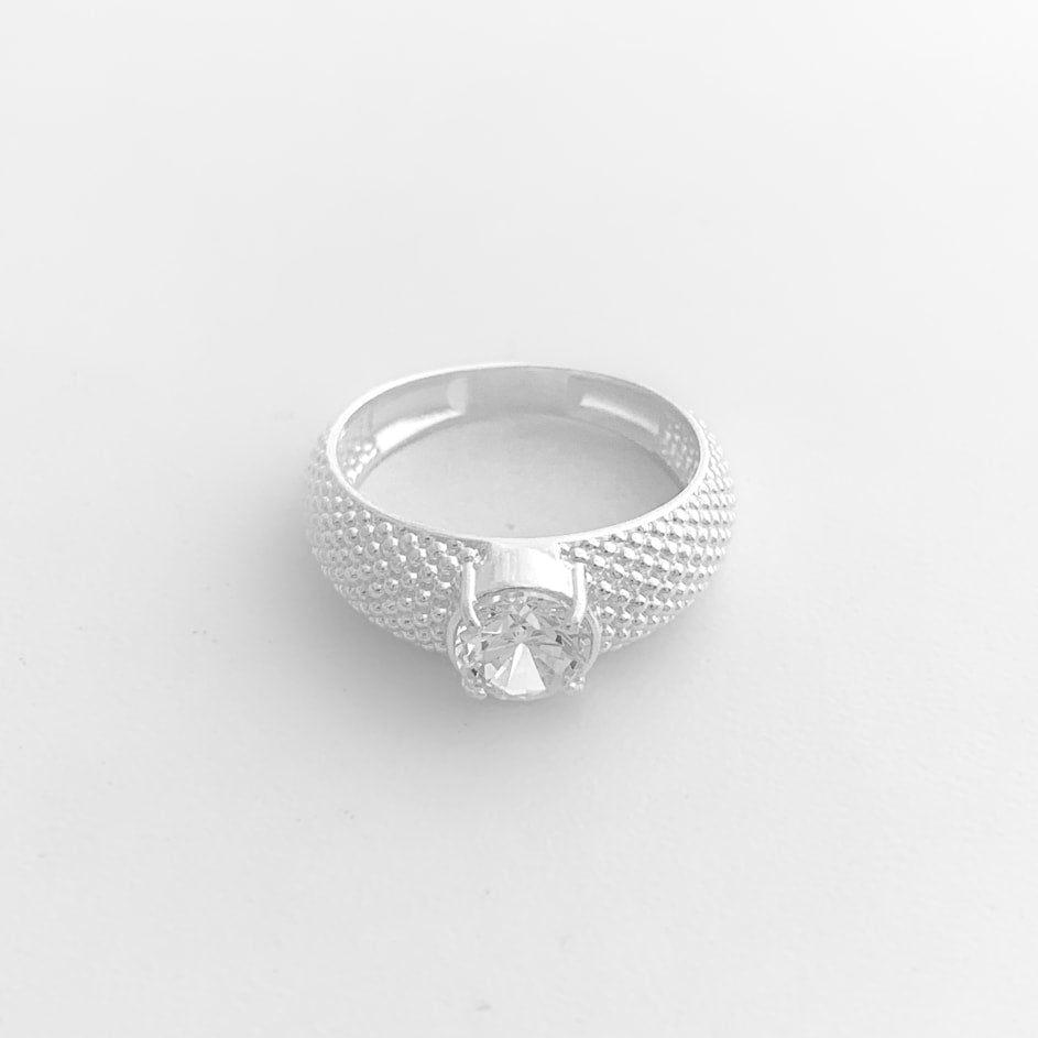 Anel com Aro Trabalhado com Zircônia Redonda Branca