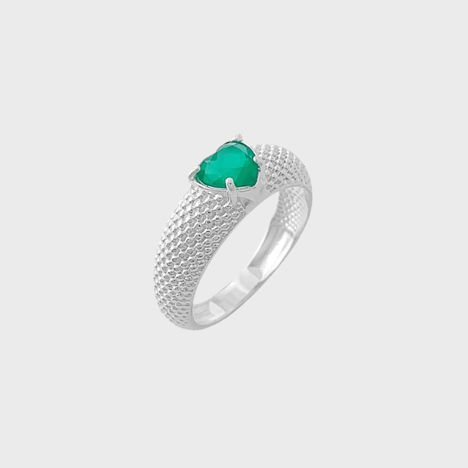 Anel com Aro Trabalhado com Zircônia de Coração Criso Leitosa
