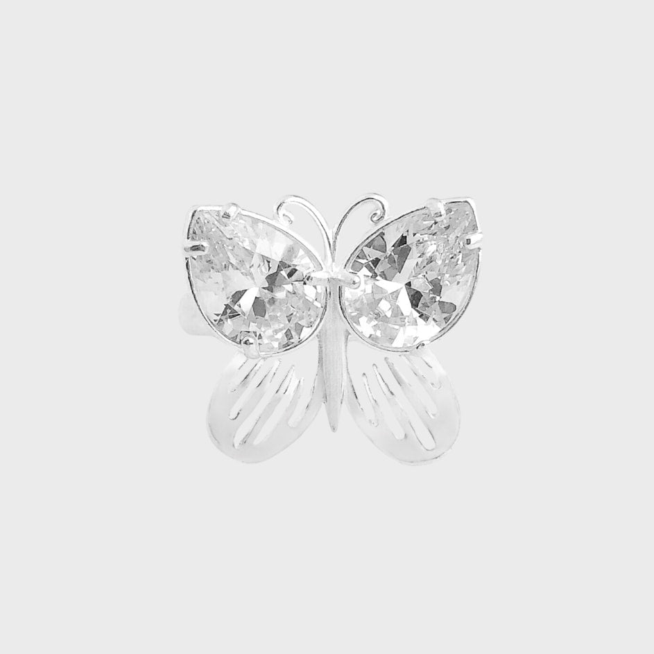 Anel com Borboleta Vazada e com Zircônias Brancas
