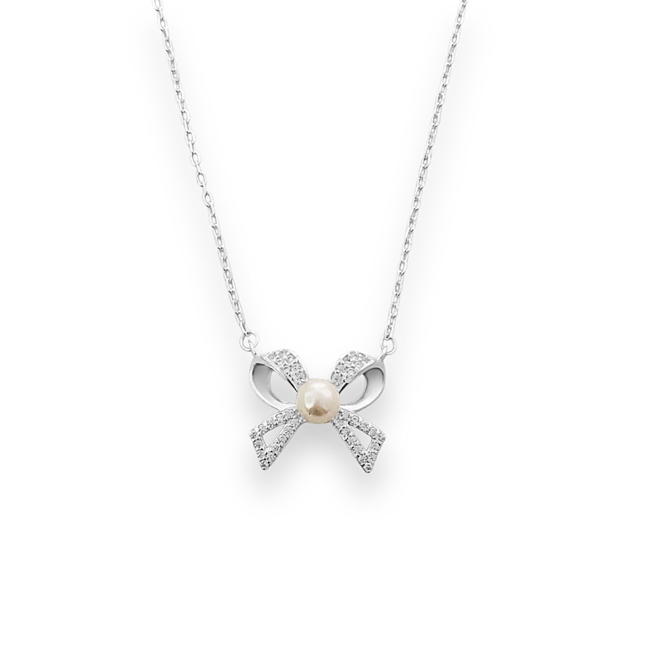 Gargantilha com Laço Cravejado de Zircônias e Pérola 40cm