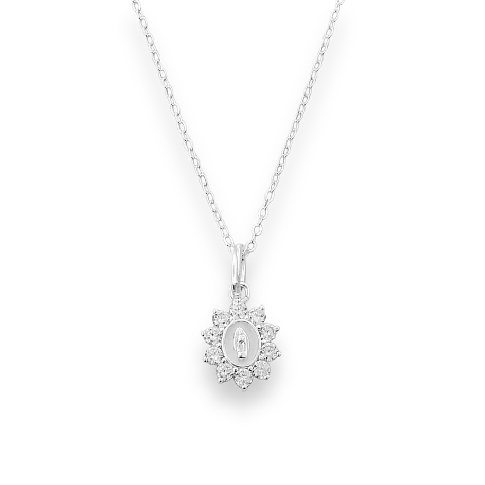 Gargantilha de Nossa Senhora das Graças com Bordas Cravejadas de Zircônias - 45cm