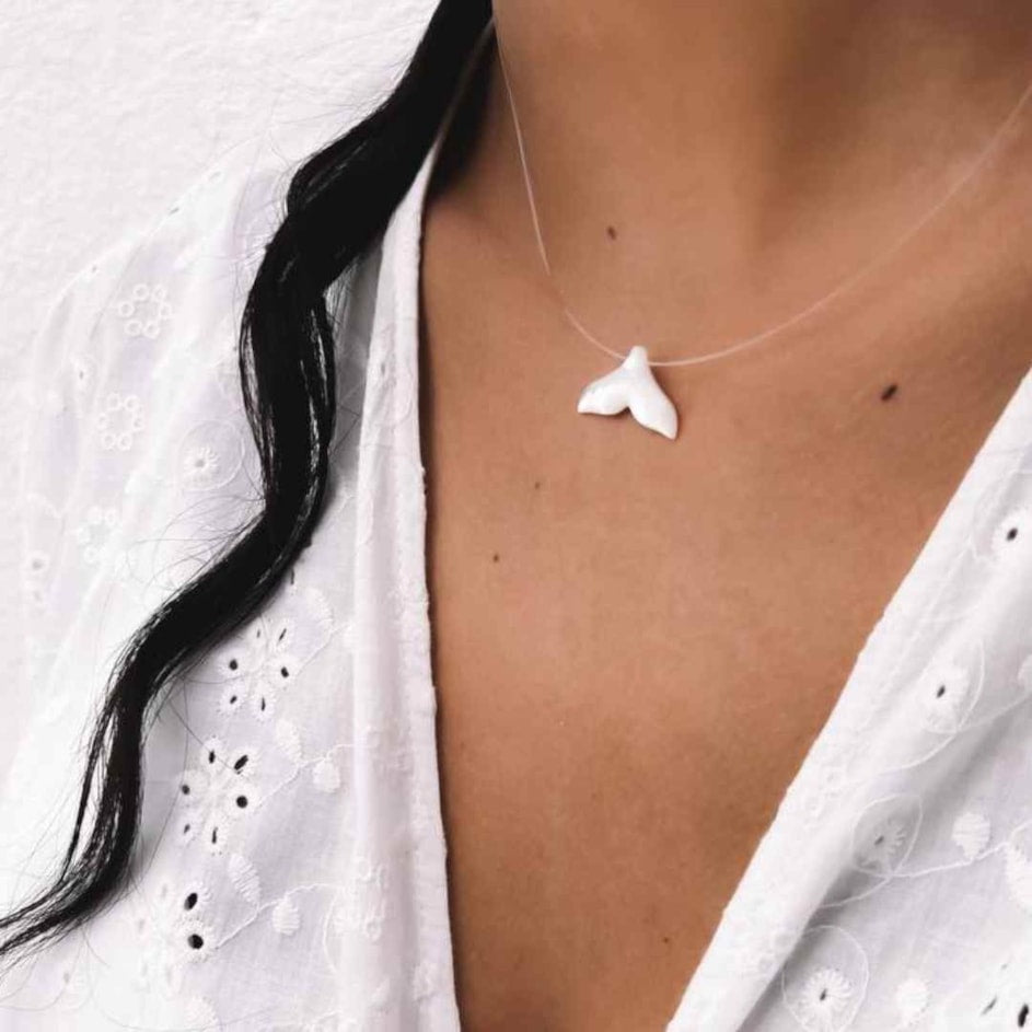 Gargantilha de Fio de Nylon de Cauda de Sereia em Madrepérola - 40cm