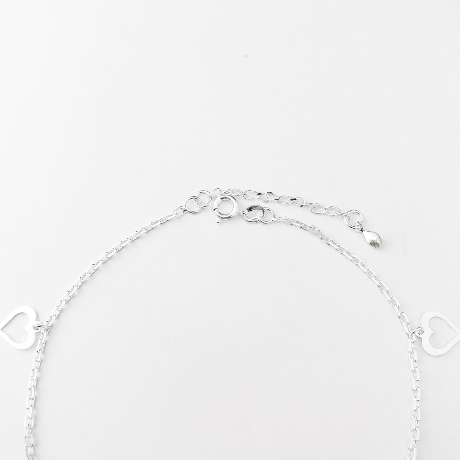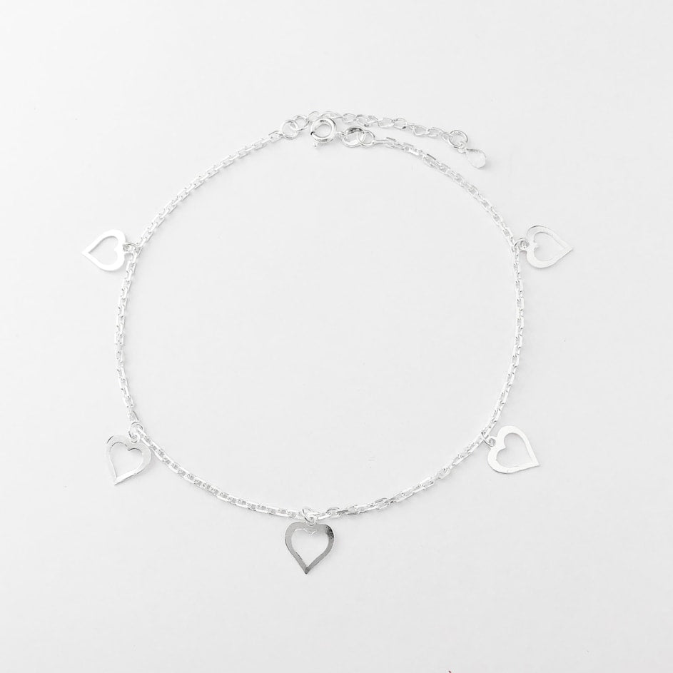 No estilo minimalista, a Torno de Corações tem o design bem delicado e sútil. Tem 24 cm de comprimento na malha de elos retangulares, conhecida como Corrente Cartier. Os pingentes fofos de coração são vazados, dando muita delicadeza ao acessório.