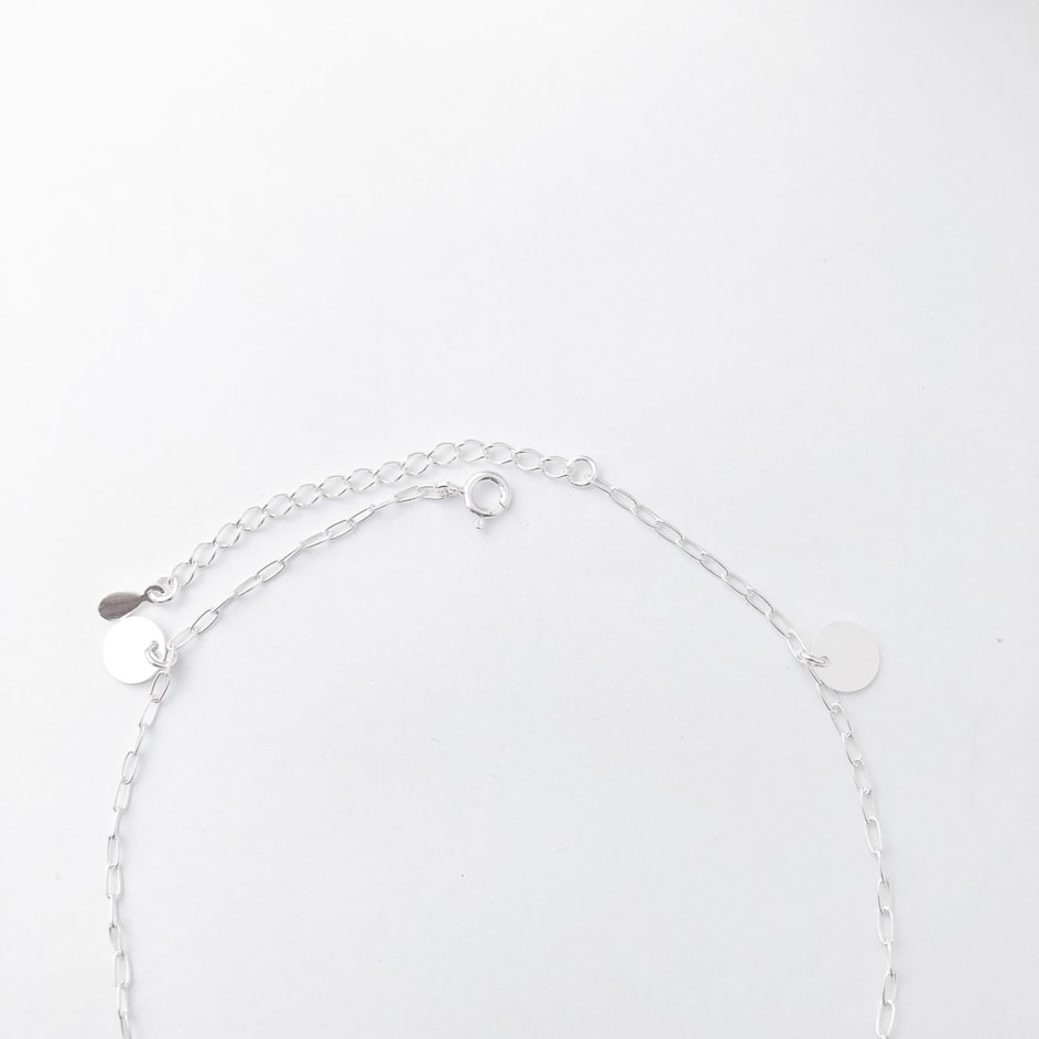 Aqui está minha gente, com estilo delicado e versátil a torno com Medalhinhas é fabricada com a Corrente Cartier com espessura fina com acabamento na prata branca com 24cm + extensor de 4cm com acabamento do pingente em gota. Muito linda né?
