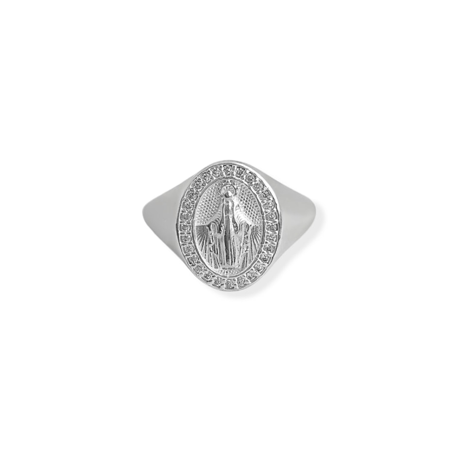 Anel de Nossa Senhora das Graças com Bordas Cravejadas de Zircônias
